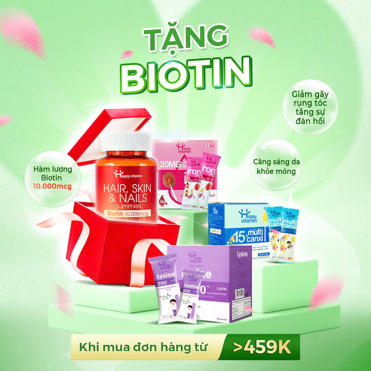 Tặng ngay 1 hộp Biotin – bí quyết cho tóc, da và móng chắc khỏe của mẹ khi mua đơn hàng từ 459K