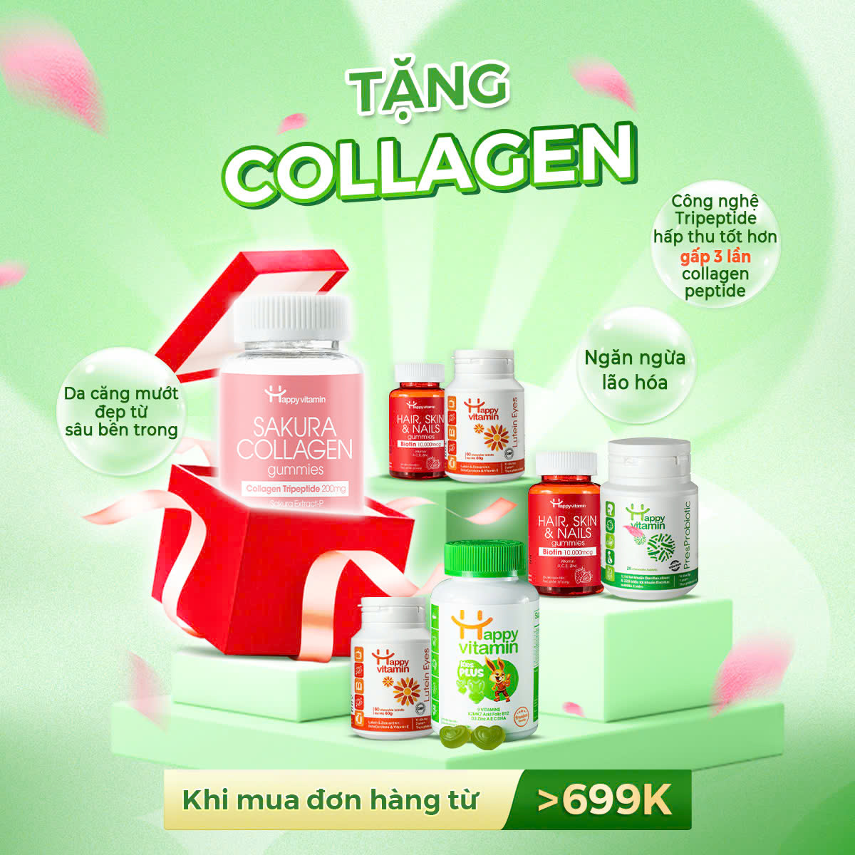 Tặng ngay 1 hộp Collagen – giúp mẹ giữ mãi nét thanh xuân với làn da căng mịn, săn chắc khi mua đơn hàng từ 699K