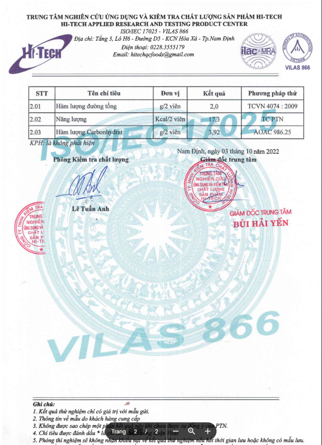 Sản phẩm đã được kiểm định thành phần An toàn Vệ sinh Thực Phẩm