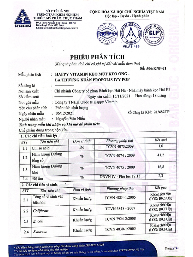 Sản phẩm Kẹo mút keo ong cao thường xuân đã được chứng nhận của Bộ Y Tế về tác dụng, cũng như sự an toàn của nó đối với con người, đặc biệt là trẻ em. Nó là kết quả của sự nghiên cứu nỗ lực của các chuyên gia ở trong và ngoài nước. Đảm bảo phù hợp với con người và trẻ em Việt Nam