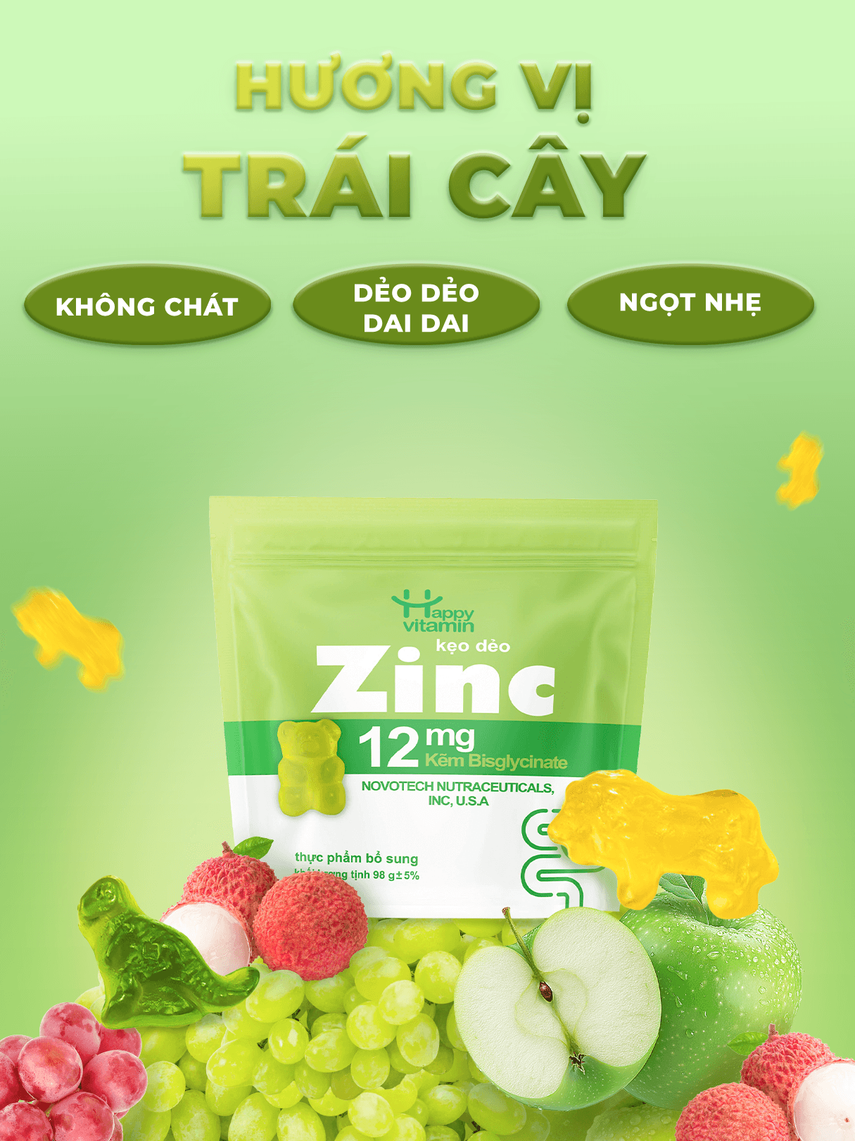 Tìm hiểu các dạng kẽm nên dùng cho trẻ, so sánh ưu nhược điểm & khám phá kẹo dẻo kẽm ZinC Happy Vitamin, ngon miệng, dễ dùng, hỗ trợ miễn dịch hiệu quả.