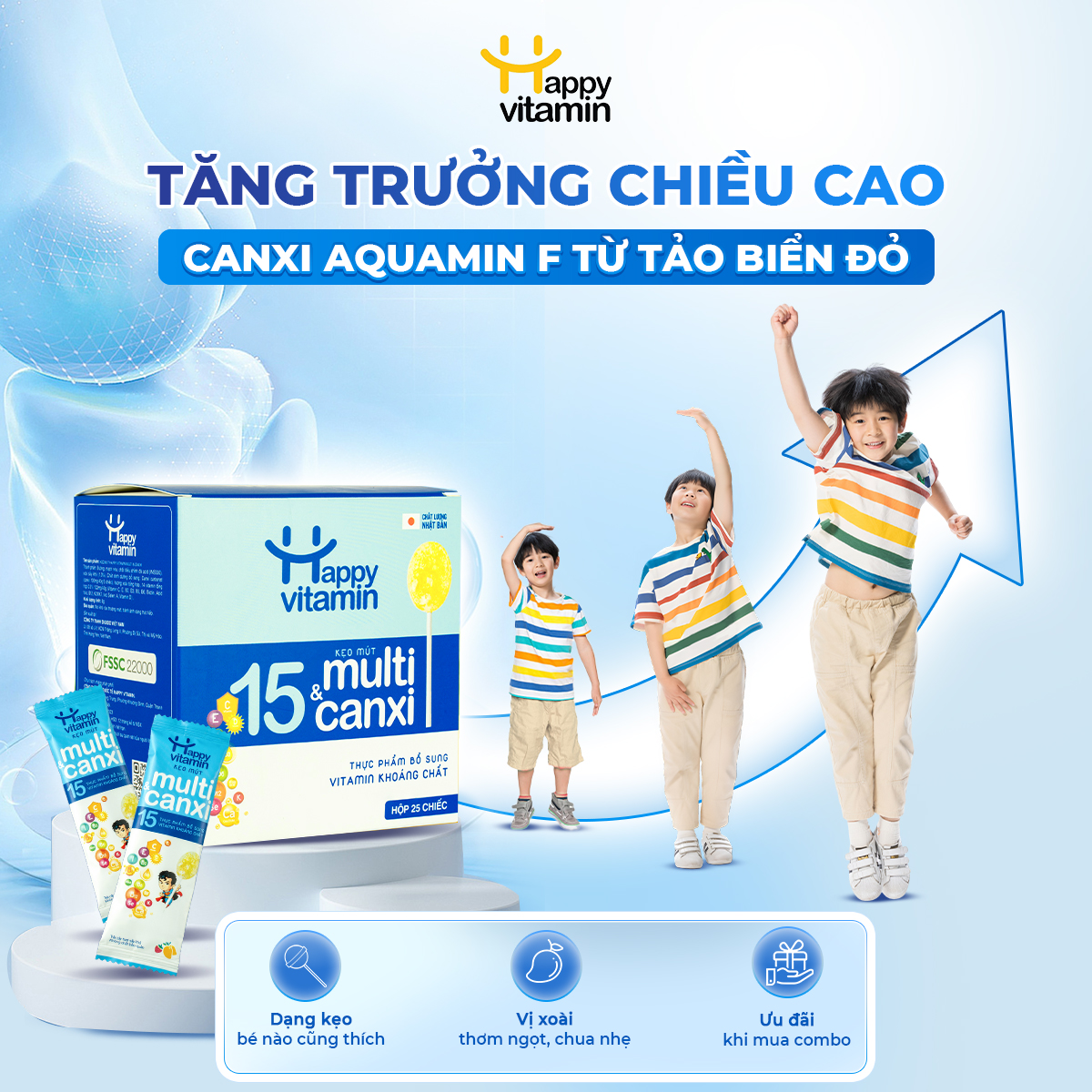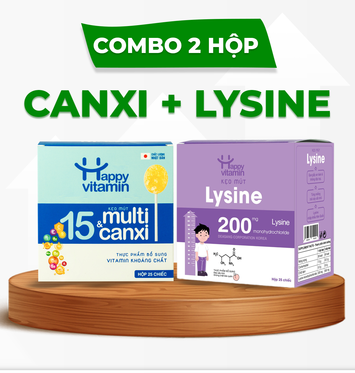 6. Bộ đôi giúp con tăng trưởng chiều cao gồm kẹo mút bổ sung Lysine và kẹo mút bổ sung Canxi của nhà Happy Vitamin