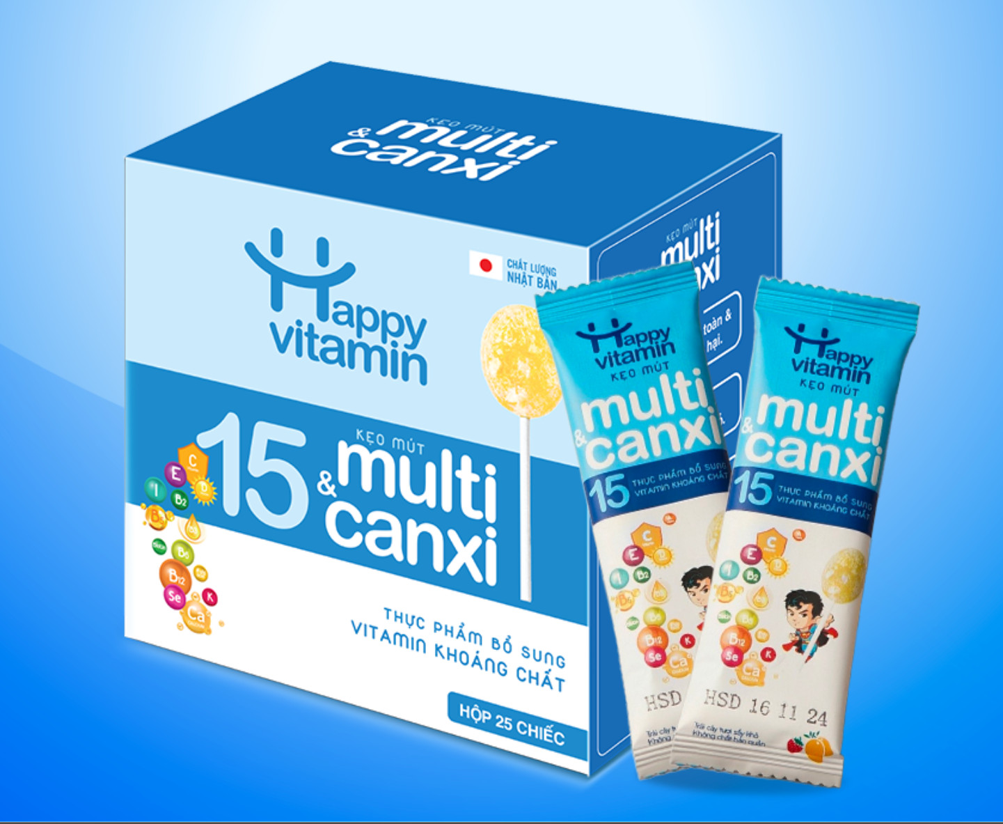 Kẹo mút Multi & Canxi có thành phần và công dụng gồm: