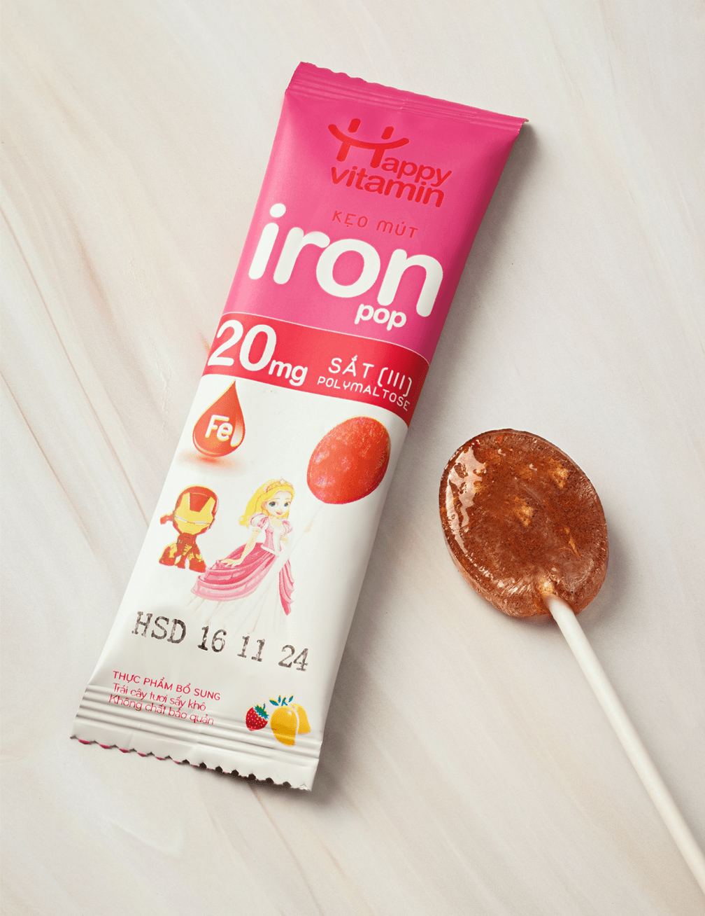 Hiểu được điều đó, Happy Vitamin đã cho ra đời kẹo mút bổ sung sắt Iron Pop, giải pháp giúp bé bổ sung sắt một cách dễ dàng – và vui vẻ hơn.