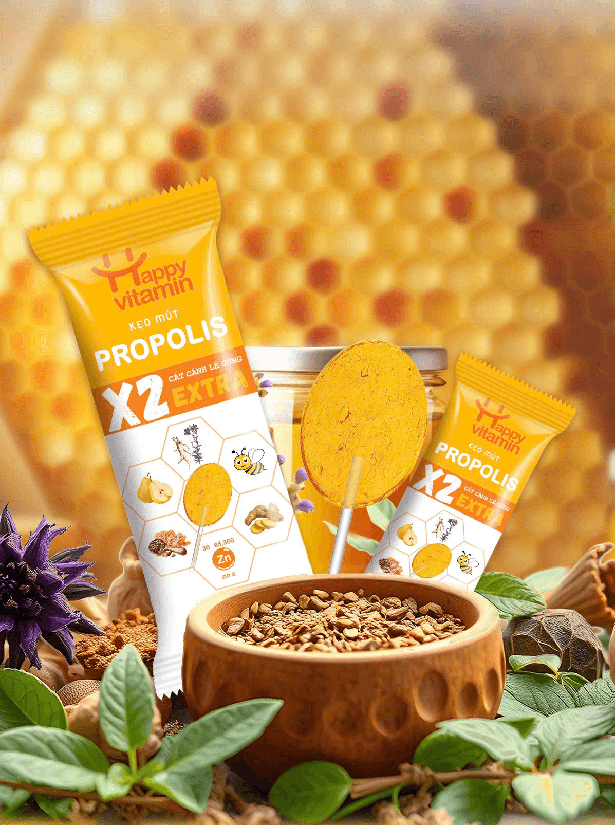 Kẹo mút keo ong extra cát cánh lê gừng của Happy Vitamin